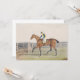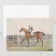 Dieses Design zeigt ein Gemälde des englischen Künstlers John Frederick Herring Sr. (1795-1865). Es zeigt eine Vintage britische Rennserie im Profil. Das Pferd trottelte auf dem Gras herum. Das Tier wird von einem Jockey geritten, der ein blaues und gelbes Kostüm trägt. Das Pferd hat ein schönes braunes Fell und einen eleganten schwarzen Schwanz. Das Originalwerk wurde um 1816 gemalt.