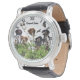 Uhr, Klassische Damenuhr mit schwarzen Lederarmband
