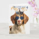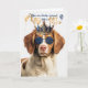 A birthday card fit for a king from their adorable Brittany Spaniel dog in a royal crown and matching shades to celebrate with dad and send birthday wishes filled with treats.