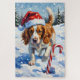 Celebrate the keen focus and energy of the Brittany Spaniel this Christmas! This lively watercolor features a handsome Brittany, wearing a Santa hat, intensely 'pointing' at a lost candy cane in a bright, snowy field. Perfect for Brittany owners, hunting dog enthusiasts, and anyone who appreciates a vibrant, active pet design for the holidays. Ideal for unique Christmas cards, seasonal apparel, and gifts that capture the breed's intelligence and festive spirit.