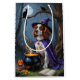 Treten Sie ein in eine zauberhafte Halloween-Nacht mit diesem skurrilen Ölgemälde mit einem hübschen, in einem Mini-Hexenschrank gekleideten Jungtier, das neben einem Kessel in einem schattigen Wald sitzt. Umgeben von glühenden Tränen, alten Zauberbüchern und funkelnden Zaubersprüchen ist die Szene voller Mysterien und Charme. Reiche, malerische Texturen und tiefe Halloween-Farbtöne sorgen für ein gemütliches, zauberhaftes Ambiente, das sich perfekt für sportliche Saisonliebhaber eignet.