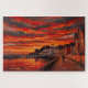 Step into a peaceful morning on the English coast. This Gallery Edition puzzle captures the radiant "Harbor Glow" of Brixham, England, featuring the silhouette of a solitary walker beneath a dramatic, swirling sky.