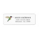 Rückadressschild mit einem niedlichen, breit gestreuten Hummingbird, der auf einem Zweig steht. Der Stil des Schriftartes, die Größe des Schriftartes und die Farbe können durch Klicken auf "Weitere Anpassungen vornehmen" geändert werden.