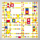 Eine digitale Interpretation von Piet Mondrians Komposition von 1943. Dies unterscheidet sich dadurch, dass es starr an einem festen Gitter festhält, das im Original fehlt.