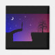 Ein zeichn eines stehenden, auf einer gebrochenen Brücke silhoutierten Mannes, der über den Golf blickt, wo ein einsamer Wildbaum steht. Hinter ihm liegen der Mond und die Sterne in einem dunkelblauen Himmel, die auf der anderen Seite zu Rot fliegen, um den Sonnenaufgang zu beginnen. Ein Beispiel für die Emotionen der Hoffnung, Verzweiflung und Einsamkeit, wenn er das Ende der Straße erreicht und den Weg unpassierbar findet.