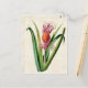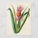 Postkarte mit einem digital gereinigten und verbesserten Vintage-Bild einer Bromeliad-Pflanze mit rosa Blume auf Pergamenthintergrund. Illustriert von Etienne Denisse für Flore d'Amerique, veröffentlicht in Paris, 1843.