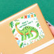 Dieses gemeinsame Geburtstag Dinosaurier Design zeigt einen langen Hals Brontosaurus in grün und orange umgeben von Blättern und Bändern. Alle Illustrationen sind handgemalt in Aquarellmalerei. Dieses Design hat Platz für zwei Namen für eine kombinierte Geburtstagsfeier oder Sie können es für einen Single-Namen bearbeiten. Sehen Sie sich die gesamte passende Auflistung an.