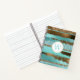 Glitzy mit Monogramm Draht Notebook, mit Grafiken aus einem Aqua- und Bronze-Folie und Glitzer-Look gestreift. Ein dünner vergoldeter weißer Textbereich auf der Vorderseite des Notebooks hat ein Monogramm aus dem Aqua-Single, das für die Personalisierung bereit ist.