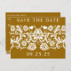 Save the Date Bronze Gold Caramel und Weiß Vintage Viktorianische Blütenmatte zeigt Deep Rich Caramel Chai Tee aber Sie wählen Card und Schriftart Farben. Billige Hochzeit Save the Date Postkarten