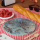 Bronze-verzauberte Libellen auf einem Sternenhimme Pappteller