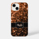 Personalisieren Sie Imitate funkelnd mädchenhafte iPhone Gehäuse mit Ihrem Initial und Namen. Schwarz-Weiß-elegantes Monogramm. Bronze, Orange, Braun, Kupfer und warme Farbtöne und erdige Farbtöne von Eleganz, Wärme und Gemütlichkeit. Imitate Glitzer Glitzern spielerisch whimsical aussehen, fangen das Licht und reflektieren es in einer blendend Anzeige von Schimmer und Glanz. Wir verwenden Foto von Bronze Glitzern Glitzer!