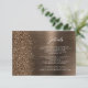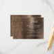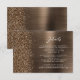 Diese elegante moderne Hochzeitsdetails-Karte enthält ein bronzefarbenes, gebürstetes Metall-Hintergrundbild, das mit klobigem, diamantartigem Glitter bestreut ist. Passen Sie den weißen Text an, wobei der Titel "Details" in stilvoller Handschrift und der restliche Text in einer serifenlosen Schriftart gehalten ist. Die Rückseite zeigt ein passendes Design mit bronzefarbenem, gebürstetem Metall und Glitter.