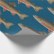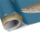 Brook Forellen Packpapier. Verwenden Sie, um Geschenke für Väter oder Großpas, die Liebe angeln. Maskuline, dunkelblaue Farbe mit großem Fischmuster. Ideal zum Umhüllen von Geschenken für den See oder den Fischer.