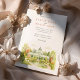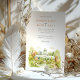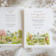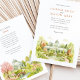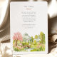 Mit dieser romantischen Hochzeitseinladung in Aquarellfarben laden Sie Ihre Gäste zu einem atemberaubenden Fest ein und stellen das berühmte Konservatorium im Botanischen Garten Brooklyn vor. Das Kunstwerk an der Vorderseite bezeugt die ruhige Schönheit des Herbstes, mit dem eleganten Gewächshaus und seiner charakteristischen Kuppel, die sich in einem ruhigen Pool widerspiegelt. Die Bäume umgeben eine warme Palette von goldenen Gelbtönen und rostigen Orangen. Die Rückseite bietet "The Finer Details" und setzt das Gartenthema mit einer schönen Frühlings- oder Sommerszene fort. Es verfügt über den gleichen atemberaubenden Wintergarten, jetzt begleitet von einer zauberhaften, gewölbten Holzbrücke über einen ruhigen Teich, einem prächtigen rosa blühenden Baum (das an Kirschblüten erinnert) und eleganten, hohen rosa und weißen Blume, möglicherweise Tulpen oder Lilien, die einen Gartenweg säumen. Dieses elegante und sanfte Aquarell-Hotel eignet sich ideal für Naturliebhaber, Hochzeitsfeiern im Garten oder für diejenigen, die eine Touch des New Yorker Charmes suchen. Die Mischung aus saisonalen Darstellungen verleiht dem Ganzen einen einzigartigen Reiz. Die Farbpalette umfasst weiche Grüntöne, Weiße, Cremes, helle Blues des Glases, lebhafte Pinke der Blüten und Tulpen, die warmen goldenen Gelbtöne und Orangen des Herbstes.
