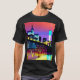 T-Shirt in einem digitalen Bild der Skyline von New York City, mit der Brooklyn Bridge bei Einbruch der Dunkelheit in lebhaften Blautönen und tiefgründigem Fuchsienrosa