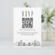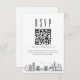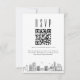 Eine minimale Hochzeitsrsvp QR-Code-Karte mit einer schönen stylisierten Skyline, die die Stadt Brooklyn repräsentiert. Ersetzen Sie den QR-Code durch einen Link zu Ihrer Website, um Ihren künftigen Gästen die Beantwortung Ihrer Hochzeitsfeier zu erleichtern.