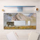 Ein digitales Bild eines Bullenkaribus, oder Rentiers, auf der Alaska-Tundra; Berge in der Ferne. Passen Sie Ihren eigenen Text an.
