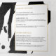 Die farbenfrohen, schwarzen Pinselstriche schaffen einen abstrakten Hintergrund in dieser anpassbaren Dreifachbroschüre. Ihr Name oder Firmenname wird in einer Goldbox in Imitate auf der Vorderseite für eine moderne Ästhetik angezeigt. Aktualisieren Sie den anpassbaren Text auf Ihre Marke und personalisieren Sie die Details in der Broschüre für Ihren eigenen Gebrauch. Diese 12x18-Broschüren sind die perfekte Größe, um Ihre Preislisten und Servicekarte anzuzeigen oder Ihre Produktlinie zu beschreiben. Ein großartiges Marketing, das Sie potenziellen Kunden überreichen können, um Ihr Unternehmen schnell und unkompliziert einzuführen. Bitte wenden Sie sich an den Designer, um Hilfe bei der Erstellung spezieller Schrift- oder Layoutvarianten zu erhalten. Kunst und Design © 1201AM Design Studio | www.1201am.com