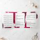 Tief gestrichene, rubinrote Pinselstriche schaffen einen abstrakten Hintergrund in dieser individuell anpassbaren Dreifachbroschüre. Ihr Name oder Firmenname wird in einer Goldbox in Imitate auf der Vorderseite für eine moderne Ästhetik angezeigt. Aktualisieren Sie den anpassbaren Text auf Ihre Marke und personalisieren Sie die Details in der Broschüre für Ihren eigenen Gebrauch. Diese 12x18-Broschüren sind die perfekte Größe, um Ihre Preislisten und Servicekarte anzuzeigen oder Ihre Produktlinie zu beschreiben. Ein großartiges Marketing, das Sie potenziellen Kunden überreichen können, um Ihr Unternehmen schnell und unkompliziert einzuführen. Bitte wenden Sie sich an den Designer, um Hilfe bei der Erstellung spezieller Schrift- oder Layoutvarianten zu erhalten. Kunst und Design © 1201AM Design Studio | www.1201am.com