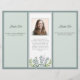 Dreifach gefaltet, Geschäftsbroschüre für eine berufliche Frau, mit Platz für ein persönliches Foto. Hellgrüne Eukalyptus-Blätter mit Lavendelsprigs schmücken jede Seite. Passen Sie Text auf allen drei Seiten an. Die Abschnitte wechseln zwischen hellgrün und weiß mit "Header-Text" und kleineren Vorlagen. Fügen Sie einen "about"-Bereich mit einem Foto in der mittleren Leiste auf der Rückseite ein. Das Papier wird nach dem Kauf zu dritt gefaltet. Füllen Sie die Vorlagen auf sechs Seiten aus, um viele Informationen über eine Dienstleistung oder einen Beruf zu erhalten. Saubere und unübersichtliche Art, professionell zu werben. Bitte kontaktieren Sie mich mit einem Link zu Ihrem Produkt, wenn Sie Hilfe benötigen, um Text zu verschieben oder Farben zu ändern, etc.