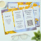 Yellow Gingko verlasst eine Broschüre, die auf beiden Seiten individuell gestaltet werden kann. Jede Seite dieses 8x11 Zoll großen Papiers hat drei hellblaue Abschnitte mit Vorlagen. Fügen Sie auch ein Logo, QR-Code, und / oder Foto in den Bereichen zur Verfügung gestellt. Wenn Sie nicht gewollt haben, einen oder mehrere der Bildhalter zu verwenden, entfernen Sie diese, indem Sie zum "Bearbeiten in Design-Tool" gehen, das Sie durch Scrollen zum unteren Rand des personalisierbaren Bereichs finden. Wählen Sie im Designbereich das Bild aus, indem Sie es anklicken, und klicken Sie dann auf das Symbol "Mülleimer" für das Bild.