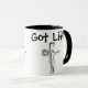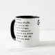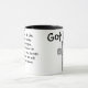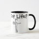 Tasse des weißen und schwarzen Kaffees mit Scripture von John-6:35 (Amp.) das Brot des Lebens.