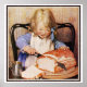 Dieses Gemälde trägt den Titel "Slicing Bread" von Jessie Willcox Smith (1863 - 1935), einer Illustratorin während des Goldenen Zeitalters der amerikanischen Illustration. Sie galt als eine der beststen reinen Illustratoren.