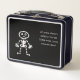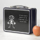Mittagsschachtel mit lustigem Skelett auf schwarzem Hintergrund