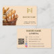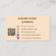Ein weich pfirsichfarbener Hintergrund. Die Einrichtung besteht aus einem Korb mit Brot und Croissants. Personalisieren und fügen Sie Ihr Firmenlogo und den Namen, Adresse auf der Vorderseite. Zurück: Vorlagen für Ihren Namen, Titel, Telefonnummer, E-Mail- und Website-Adresse, Ihren eigenen QR-Code für Ihre Website oder Ihr Social-Media-Konto. Facebook und Instagram Icons/account.
