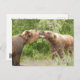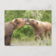 Diese Postkarte zeigt eine starke Dominanz zwischen zwei braunen Bären im Katmai Nationalpark, Alaska. Mit offenen und berührenden Mäulern spinnen sie in einer bemerkenswerten Darstellung ihrer natürlichen Hierarchie. Die Intensität ihrer Interaktion ist zwar wahrscheinlich kein wirklicher Schaden, aber ein roher und unvergesslicher Anblick aus der Alaska-Wildnis.
