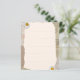 Schöne Vintage Noten in Beige- und Brauntönen, mit Blüten und Briefmarke im Hintergrund dekoriert. Füllen Sie die Zeilen mit Ihren eigenen Notizen oder jedem anderen Text.
