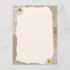 Schöne Vintage Noten in Beige- und Brauntönen, mit Blüten und Briefmarke im Hintergrund dekoriert. Füllen Sie die Zeilen mit Ihren eigenen Notizen oder jedem anderen Text.
