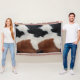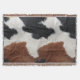 Throw blanket design featuring an Image of brown, black, and white cowhide texture print.