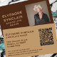 Professional business card for chocolate makers with personal portrait photo and social media icons. Brown and caramel design with QR code, Facebook, Instagram, WhatsApp, Pinterest. Add your photo, name, business details, contact info, social handles. Perfect for artisan chocolate brands.