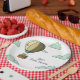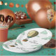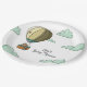 Adorable personalisierte Teller mit einer Illustration einer braunen Katze in einem Heißluftballon, der wegschwebt. Ideal für Ihre Babydusche, Abschiedsfeiern oder Abschluss. Personalisieren Sie den Text mit Ihrem eigenen. Illustriert und entworfen von Patricia Alvarez.