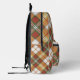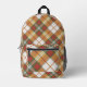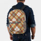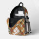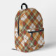 Dieser individuell anpassbare Rucksack weist ein kariertes Muster aus braun, rot, weiß und grün auf.