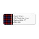 Rücksendeadressen-Aufkleber mit der Familie Tartan für Clan Brown und seine Teile, einschließlich Brune. Vintages schottisches kariertes Muster datiert aus dem Jahr 1906, in hellrot, königsblau und schwarz, mit grünen Akzenten.