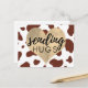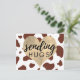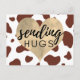 Die braune Kuh gemustert, die eine Postkarte mit einem goldenen Wasserfarbenherz in der Mitte gegen ein lustiges braunes Kuhdruckmuster verschickt.