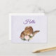 Eine Postkarte mit einem niedlichen Design, das in Aquarellen mit einem braunen Hut aus Kuhhhut und einem Strauß rosa Blume an der Spitze gestaltet wurde.