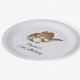 Teller aus Party mit einem niedlichen Design in Aquarellfarben mit einem braunen Hut aus Kuhhhut mit rosa Blume.