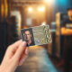 Berufliches ID-Abzeichen für private Sicherheitsbeamte mit Ihrem Namen, Titel, Foto, QR-Code, ID-Nummer und Ablaufdatum. Umfasst das Branding und die Kontaktdaten Ihres Unternehmens auf der Rückseite. Ein elegantes braunes und goldenes Design, ideal für formale Uniformen und Site Patrol.