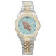 Diese Uhr zeigt ein Foto einer weiblichen Ente, das ihre braunen Federn schön auf einem aquamarinen Hintergrund zeigt. Sehen Sie sich meinen Laden für mehr Entenfotografie an. Original Artwork von Lucky Wings Artwork