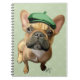 Brown French Bulldog mit Green Hat Notizblock