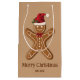 Desteis festliche Illustration eines braunen Farb-Lebkuchen mit einer Weihnachtsmannmütze und einem roten Bogen. Die Hintergrundfarbe ist hellbraun. Es gibt auch zwei personalisierbare Textbereiche.