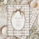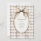 Brown and white gingham background with an oval frame with sweet vintage gingham bow flowing down on your event details Perfect for any season wedding.