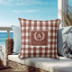 Brown Gingham Monogram Wappen Kissen