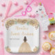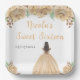 This sweet sixteen plate features faux glitter champagne peach cream floral flowers and a beautiful princess with brown hair and an elegant dress. This is perfect for a sweet sixteen birthday party.