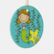 Eine braune haarige Meerjungfrau und gelbe Seesterne schwimmen zwischen den Algen, ein Design, das niedlich und farbenfroh für Mädchen, die Liebe des Ozeans und Meerjungfrauen! Meerjungfrau-T - Shirt, Karosseriebleume, Buben, Decken, Sticker, Taschen, Tasse, Schlüsselketten, Kissen, Wanduhren und viele andere Meerjunggeräte!