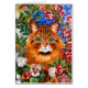 Diese herrliche Karte für Katzenliebhaber, Katzeninhaber und Bewunderer der Vintagen katzenartigen Kunst kennzeichnet eine Illustration durch berühmten englischen Katzenkünstler Louis Wain. Mitte-Bühne zu nehmen ist eine schöne braune Katze mit enormen grünen Augen, die heraus entlang des Zuschauers anstarrt. Es schaut, als ob er in einem englischen Landgarten sitzt und heraus versteckt unter bunten Sommer-Blumen in der vollen Blüte. Die Karte würde für Katzenliebhaber und Fans der Vintagen Katze Art. perfekt sein.
