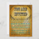 Monogram elegant, aber funky und gestört Vintage Poster Style Aqua Blau, Mustard Yellow & Brown Kraft Papier Rustikal aussehen Einladung Hochzeit